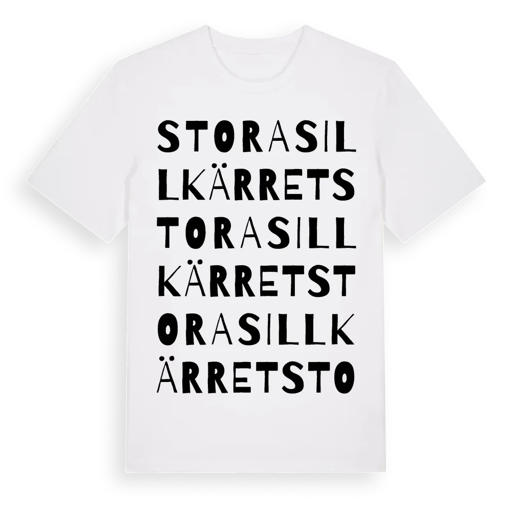 Stora Sillkärret ordlek t-shirt är inspirerad av Stora Sillkärret i Örebro län, Sverige. Tröjan är designad för dig som har en speciell koppling till platsen – oavsett om du bor här, har rötterna här eller bara älskar Stora Sillkärret.