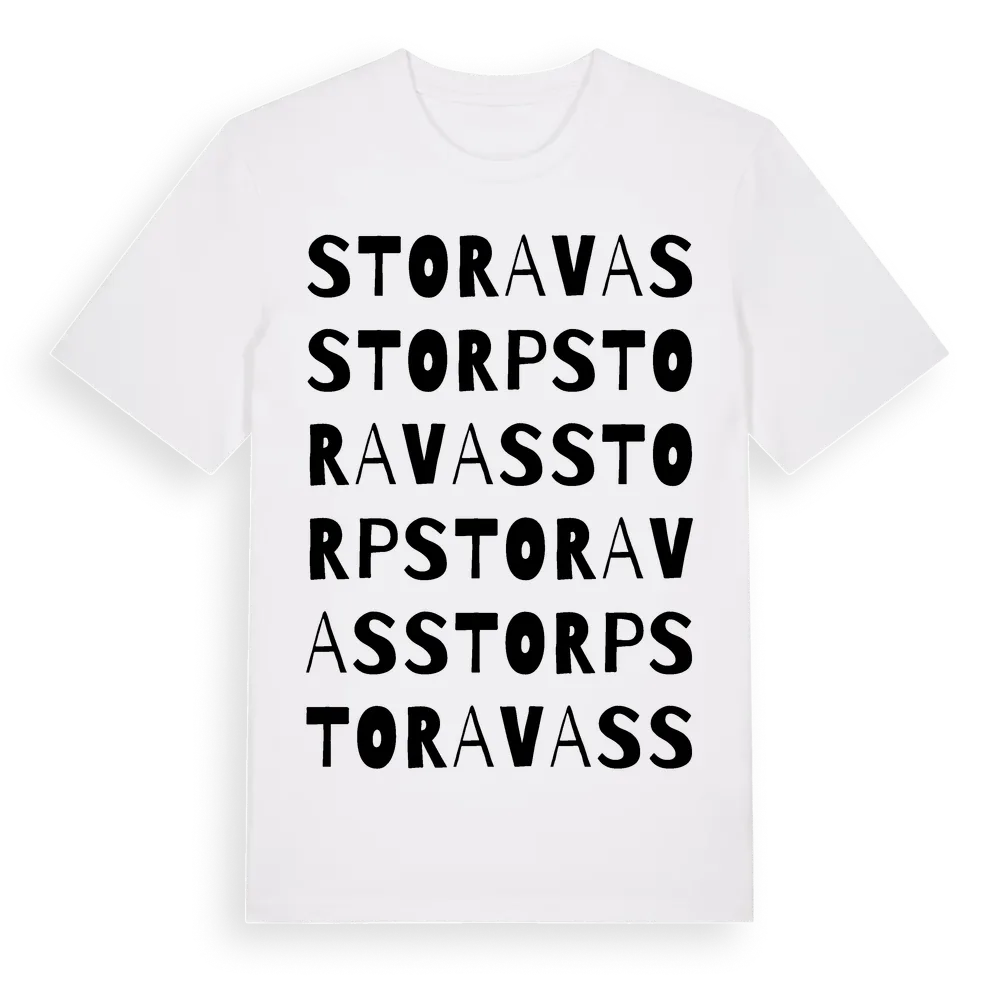 Stora Vasstorp ordlek t-shirt är inspirerad av Stora Vasstorp i Örebro län, Sverige. Tröjan är designad för dig som har en speciell koppling till platsen – oavsett om du bor här, har rötterna här eller bara älskar Stora Vasstorp.