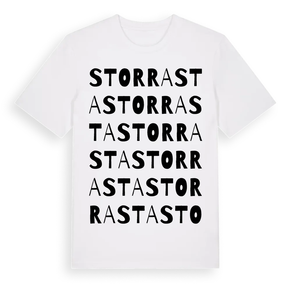 Storrasta ordlek t-shirt är inspirerad av Storrasta i Örebro län, Sverige. Tröjan är designad för dig som har en speciell koppling till platsen – oavsett om du bor här, har rötterna här eller bara älskar Storrasta.