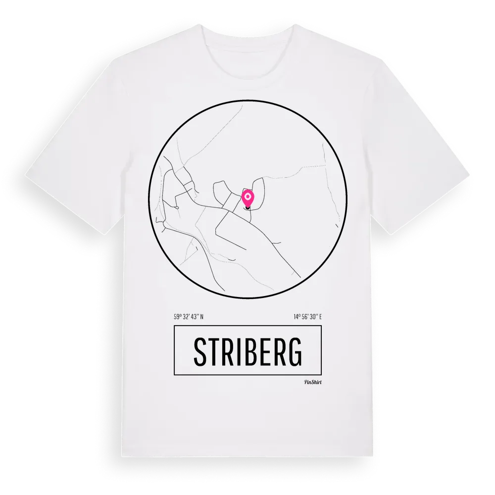 Striberg t-shirt är inspirerad av byn Striberg i Örebro län, Sverige. Tröjan är designad för dig som har en speciell koppling till platsen – oavsett om du bor här, har rötterna här eller bara älskar Striberg.