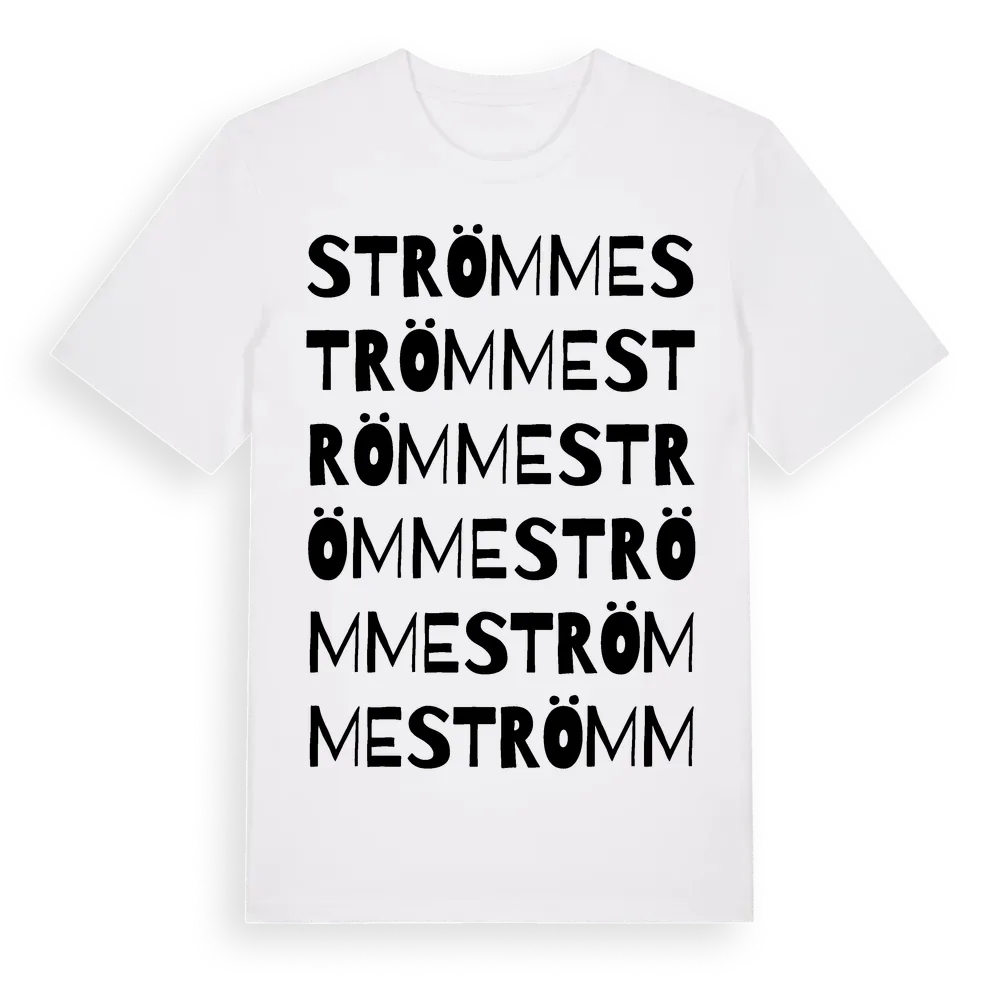 Strömme ordlek t-shirt är inspirerad av Strömme i Örebro län, Sverige. Tröjan är designad för dig som har en speciell koppling till platsen – oavsett om du bor här, har rötterna här eller bara älskar Strömme.