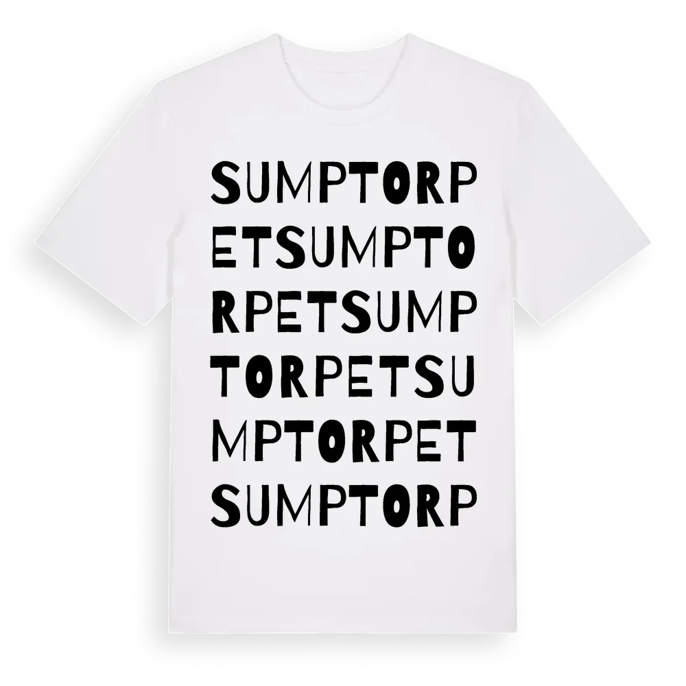 Sumptorpet ordlek t-shirt är inspirerad av Sumptorpet i Örebro län, Sverige. Tröjan är designad för dig som har en speciell koppling till platsen – oavsett om du bor här, har rötterna här eller bara älskar Sumptorpet.