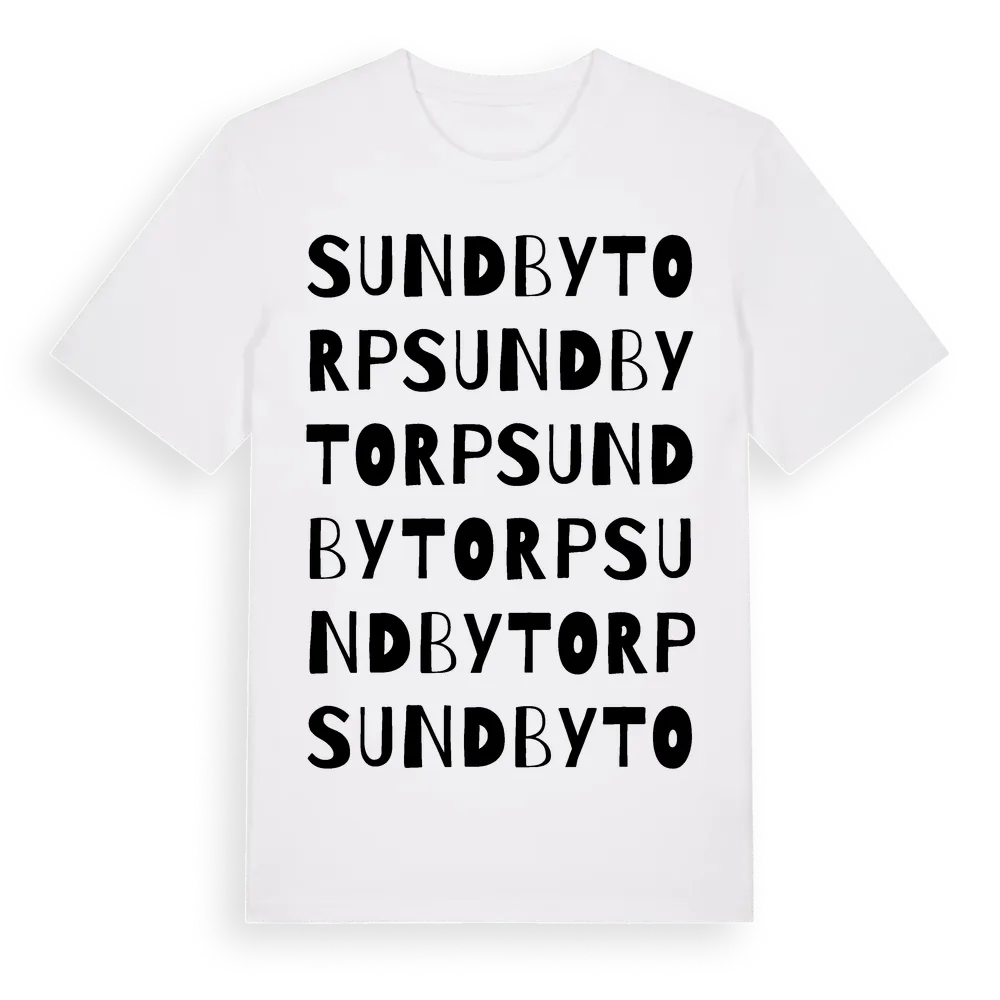 Sundbytorp ordlek t-shirt är inspirerad av Sundbytorp i Örebro län, Sverige. Tröjan är designad för dig som har en speciell koppling till platsen – oavsett om du bor här, har rötterna här eller bara älskar Sundbytorp.