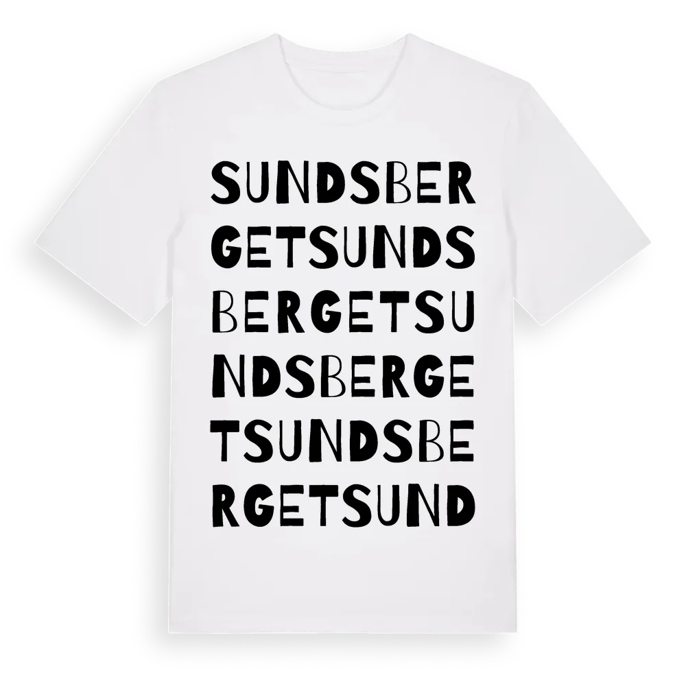 Sundsberget ordlek t-shirt är inspirerad av Sundsberget i Örebro län, Sverige. Tröjan är designad för dig som har en speciell koppling till platsen – oavsett om du bor här, har rötterna här eller bara älskar Sundsberget.