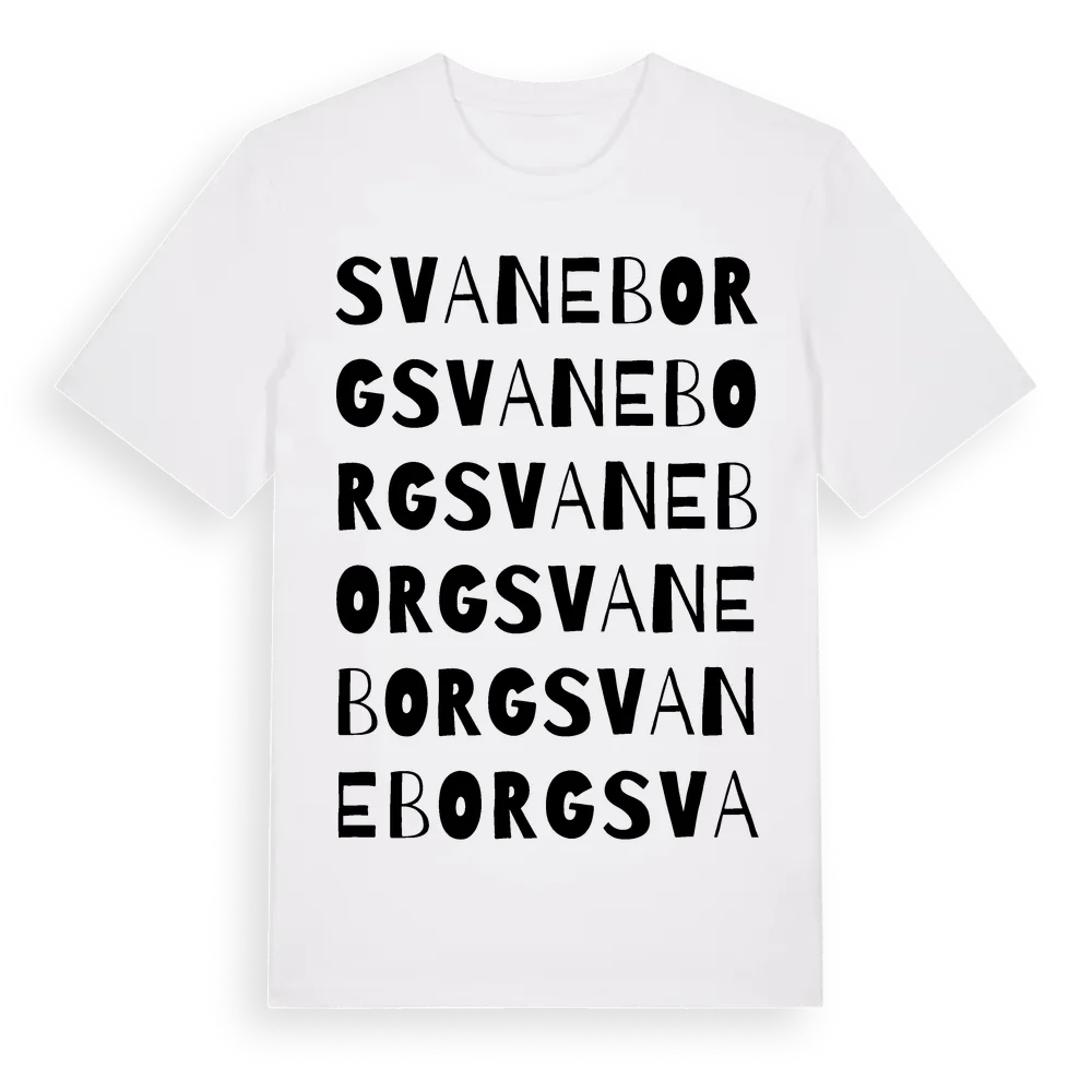 Svaneborg ordlek t-shirt är inspirerad av Svaneborg i Örebro län, Sverige. Tröjan är designad för dig som har en speciell koppling till platsen – oavsett om du bor här, har rötterna här eller bara älskar Svaneborg.