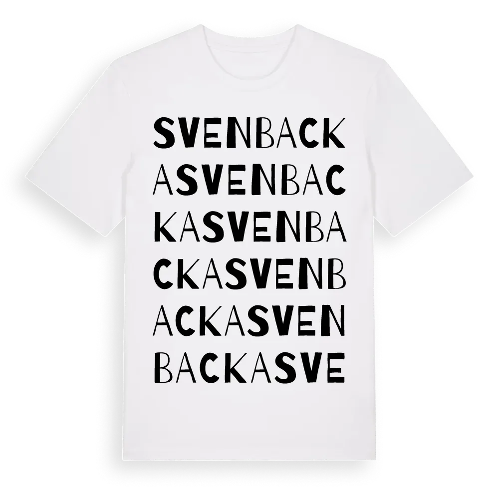 Svenbacka ordlek t-shirt är inspirerad av Svenbacka i Örebro län, Sverige. Tröjan är designad för dig som har en speciell koppling till platsen – oavsett om du bor här, har rötterna här eller bara älskar Svenbacka.