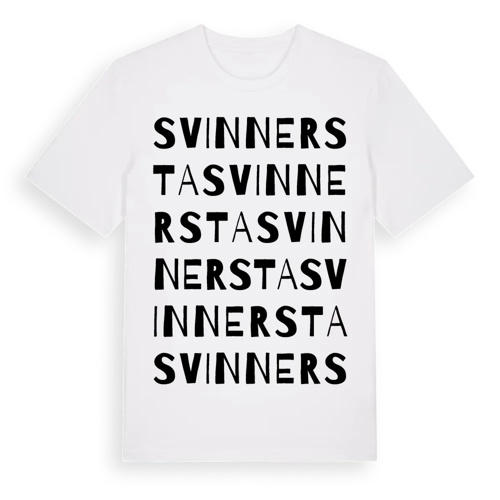 Svinnersta ordlek t-shirt är inspirerad av byn Svinnersta i Örebro län, Sverige. Tröjan är designad för dig som har en speciell koppling till platsen – oavsett om du bor här, har rötterna här eller bara älskar Svinnersta.