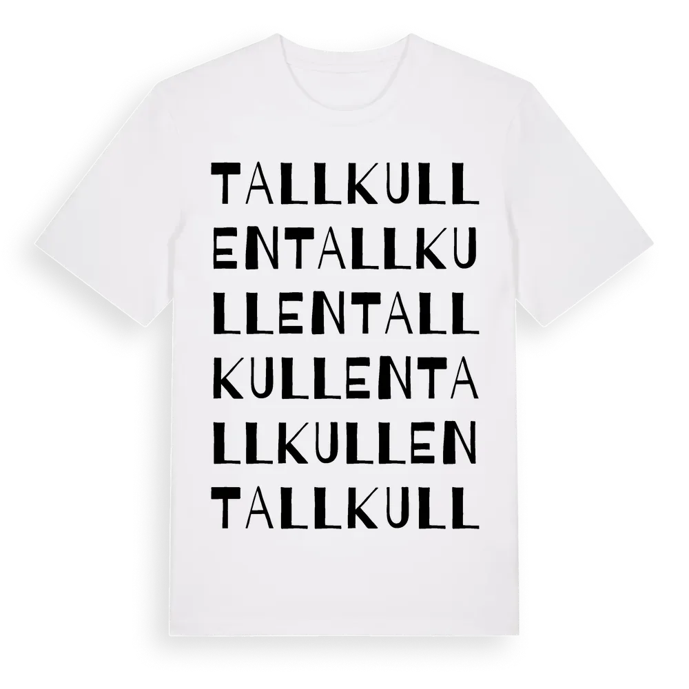 Tallkullen ordlek t-shirt är inspirerad av Tallkullen i Örebro län, Sverige. Tröjan är designad för dig som har en speciell koppling till platsen – oavsett om du bor här, har rötterna här eller bara älskar Tallkullen.