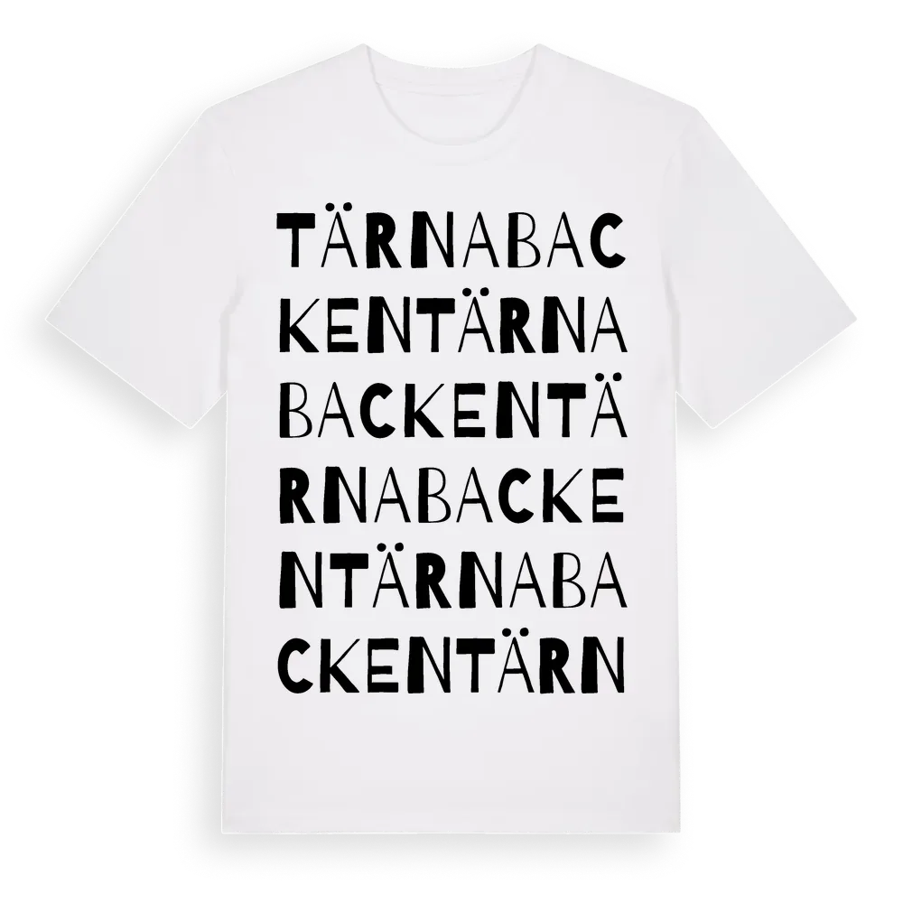 Tärnabacken ordlek t-shirt är inspirerad av Tärnabacken i Örebro län, Sverige. Tröjan är designad för dig som har en speciell koppling till platsen – oavsett om du bor här, har rötterna här eller bara älskar Tärnabacken.