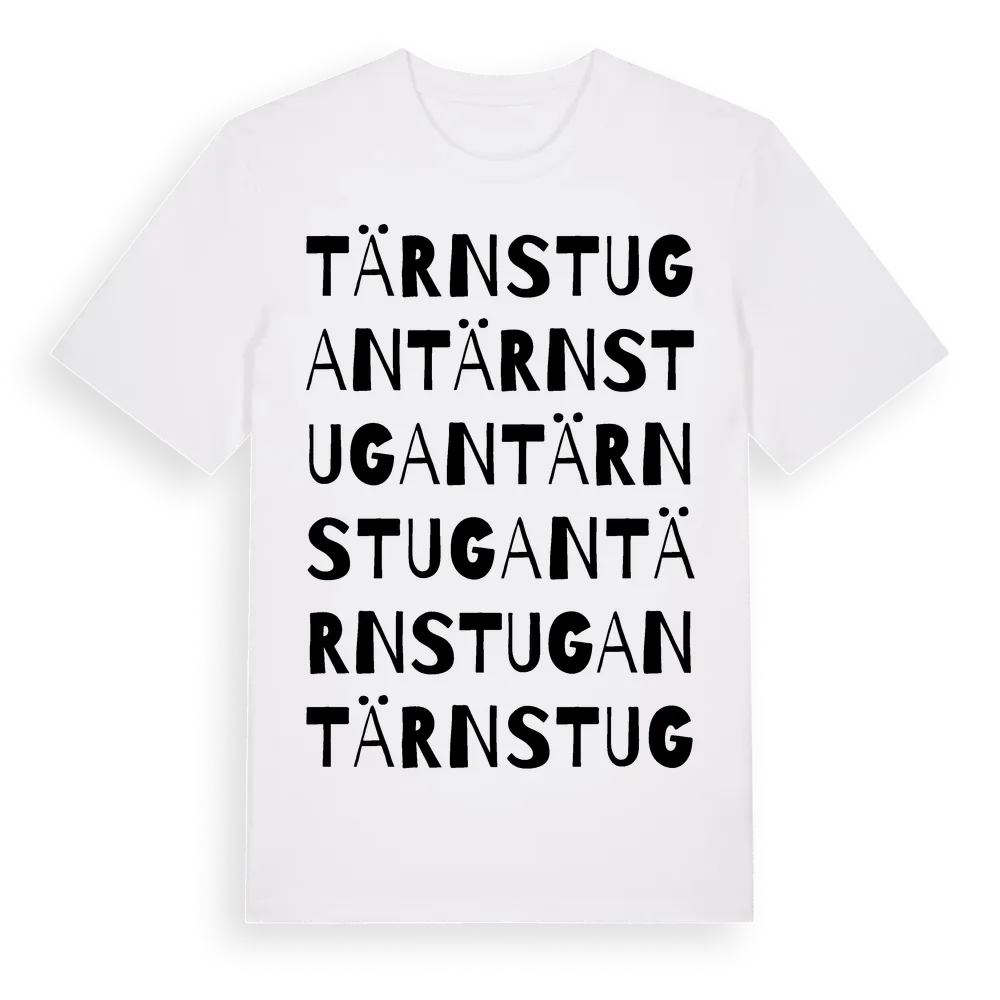Tärnstugan ordlek t-shirt är inspirerad av Tärnstugan i Örebro län, Sverige. Tröjan är designad för dig som har en speciell koppling till platsen – oavsett om du bor här, har rötterna här eller bara älskar Tärnstugan.