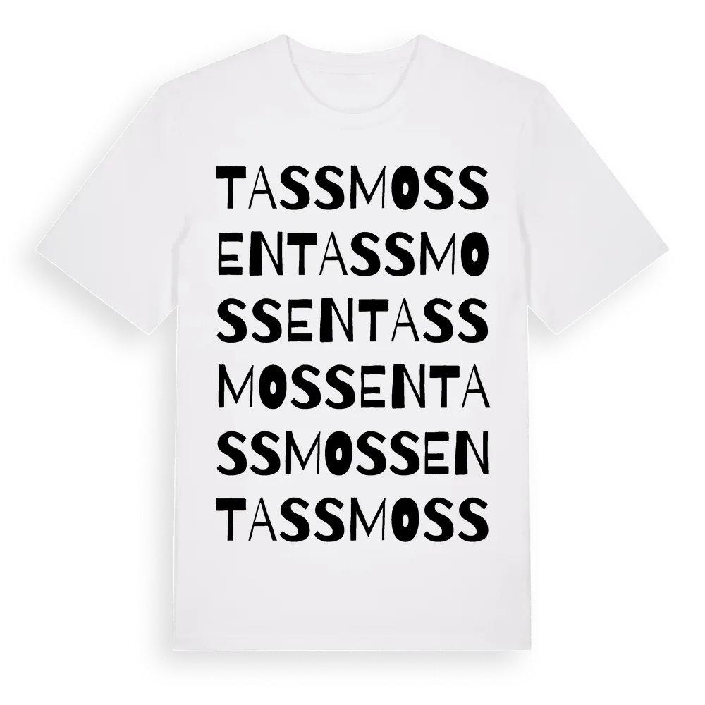 En ordlek byggd på Tassmossens namn. Subtilt och klurig – ett motiv som bara de som verkligen känner platsen fullt ut förstår. Premium bomull, unisex – från Tassmossen i Örebro län.