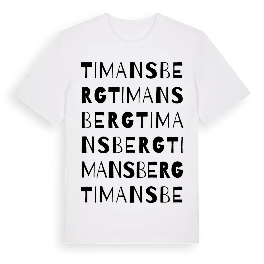 Timansberg ordlek t-shirt är inspirerad av byn Timansberg i Örebro län, Sverige. Tröjan är designad för dig som har en speciell koppling till platsen – oavsett om du bor här, har rötterna här eller bara älskar Timansberg.