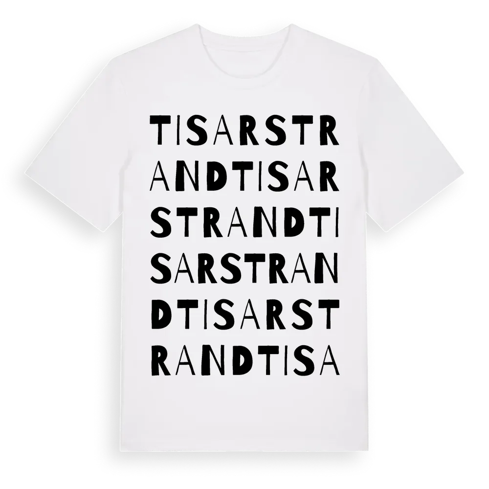 Tisarstrand ordlek t-shirt är inspirerad av byn Tisarstrand i Örebro län, Sverige. Tröjan är designad för dig som har en speciell koppling till platsen – oavsett om du bor här, har rötterna här eller bara älskar Tisarstrand.