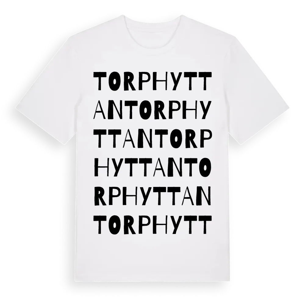 Torphyttan ordlek t-shirt är inspirerad av byn Torphyttan i Örebro län, Sverige. Tröjan är designad för dig som har en speciell koppling till platsen – oavsett om du bor här, har rötterna här eller bara älskar Torphyttan.