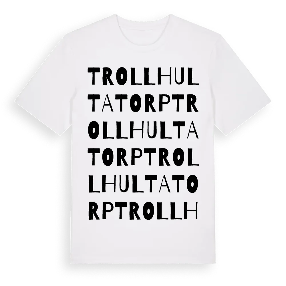 Trollhultatorp ordlek t-shirt är inspirerad av Trollhultatorp i Örebro län, Sverige. Tröjan är designad för dig som har en speciell koppling till platsen – oavsett om du bor här, har rötterna här eller bara älskar Trollhultatorp.