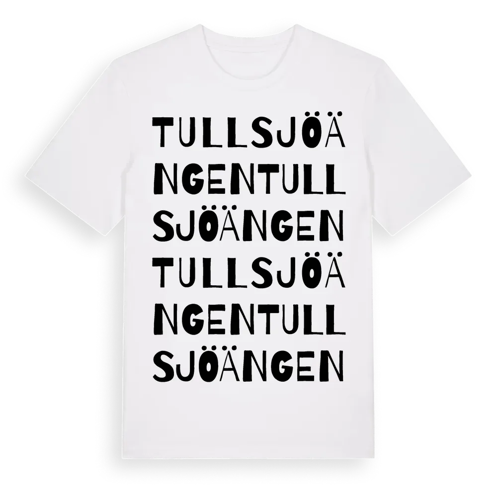 Tullsjöängen ordlek t-shirt är inspirerad av Tullsjöängen i Örebro län, Sverige. Tröjan är designad för dig som har en speciell koppling till platsen – oavsett om du bor här, har rötterna här eller bara älskar Tullsjöängen.