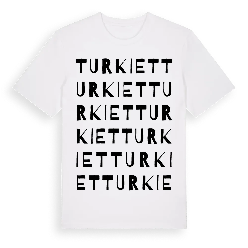 Turkiet ordlek t-shirt är inspirerad av Turkiet i Örebro län, Sverige. Tröjan är designad för dig som har en speciell koppling till platsen – oavsett om du bor här, har rötterna här eller bara älskar Turkiet.