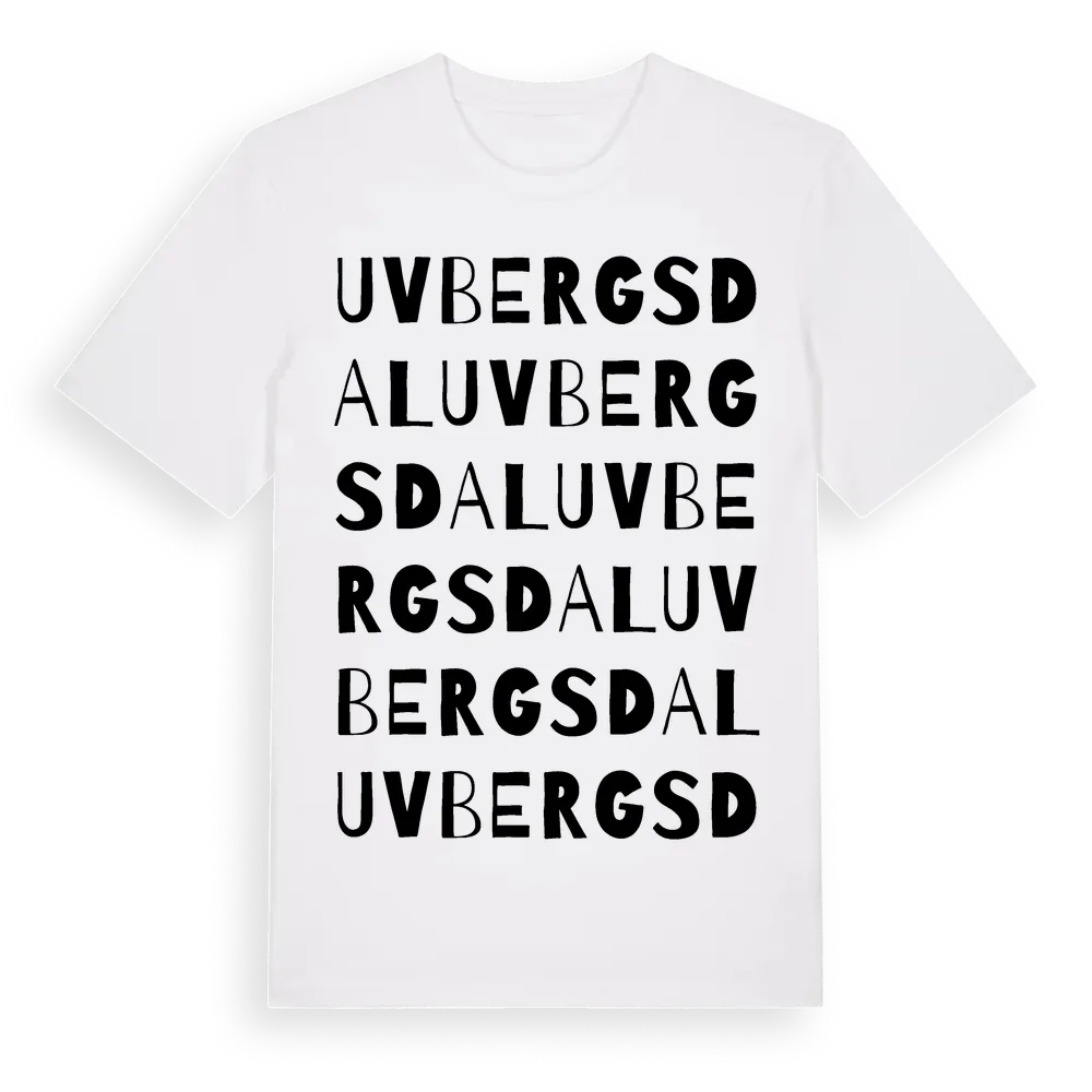 Uvbergsdal ordlek t-shirt är inspirerad av Uvbergsdal i Örebro län, Sverige. Tröjan är designad för dig som har en speciell koppling till platsen – oavsett om du bor här, har rötterna här eller bara älskar Uvbergsdal.