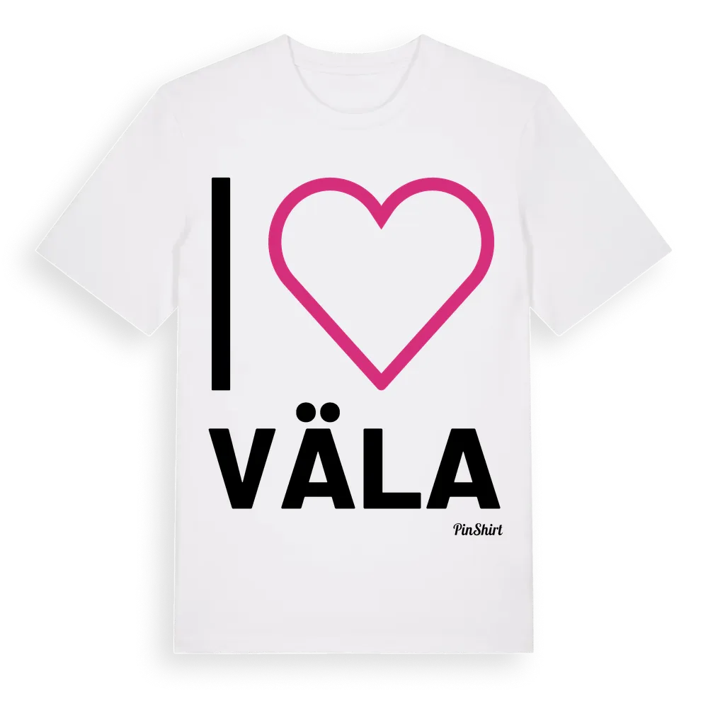 Det klassiska "I ❤ Väla"-motivet i stort format som täcker hela bröstet. För dig som vill visa kärleken till Väla på riktigt. Premium bomull, unisex – från byn Väla i Örebro län.
