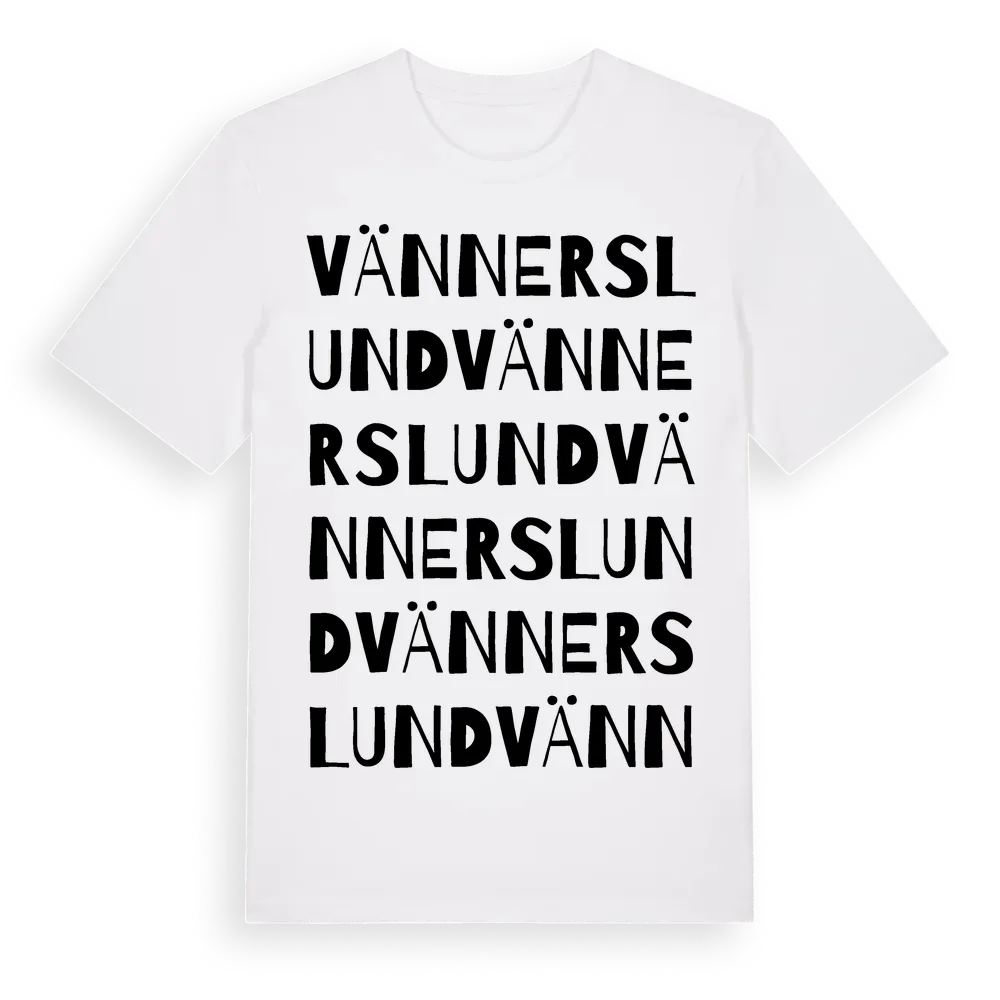Vännerslund ordlek t-shirt är inspirerad av Vännerslund i Örebro län, Sverige. Tröjan är designad för dig som har en speciell koppling till platsen – oavsett om du bor här, har rötterna här eller bara älskar Vännerslund.