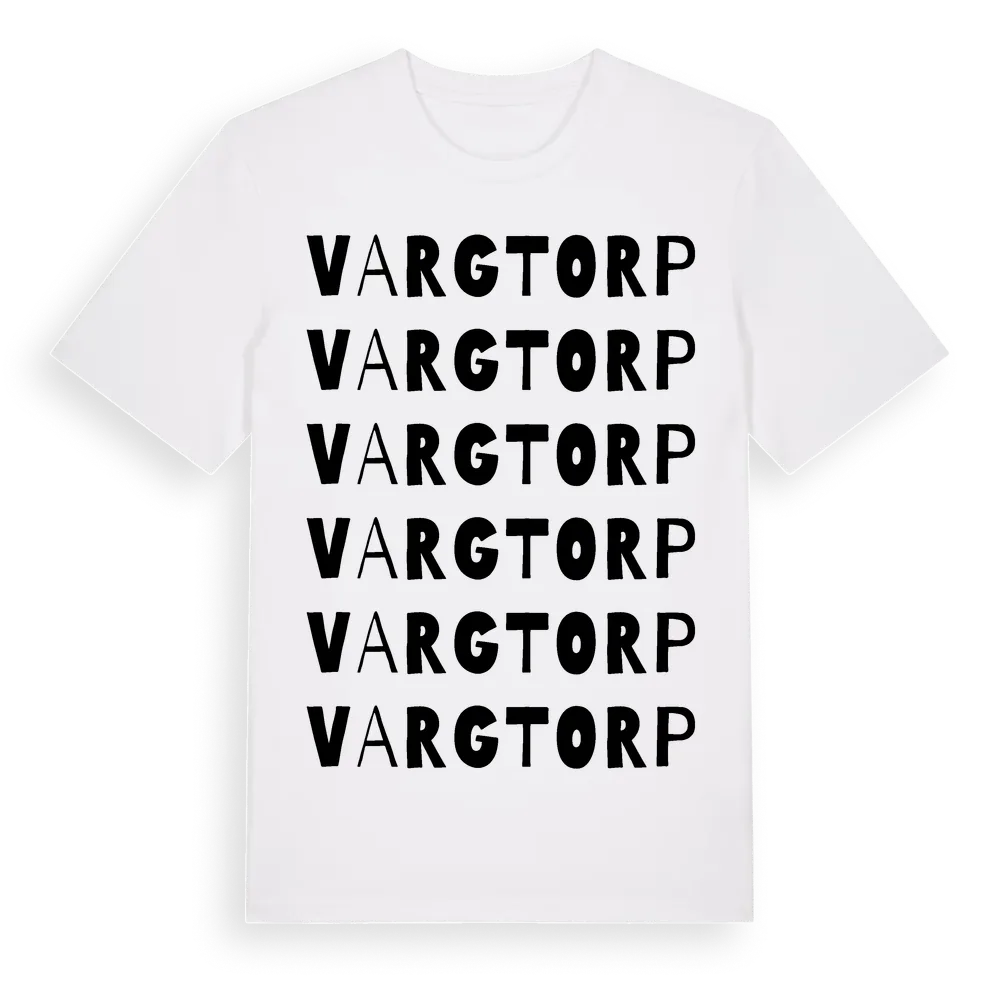 Vargtorp ordlek t-shirt är inspirerad av Vargtorp i Örebro län, Sverige. Tröjan är designad för dig som har en speciell koppling till platsen – oavsett om du bor här, har rötterna här eller bara älskar Vargtorp.