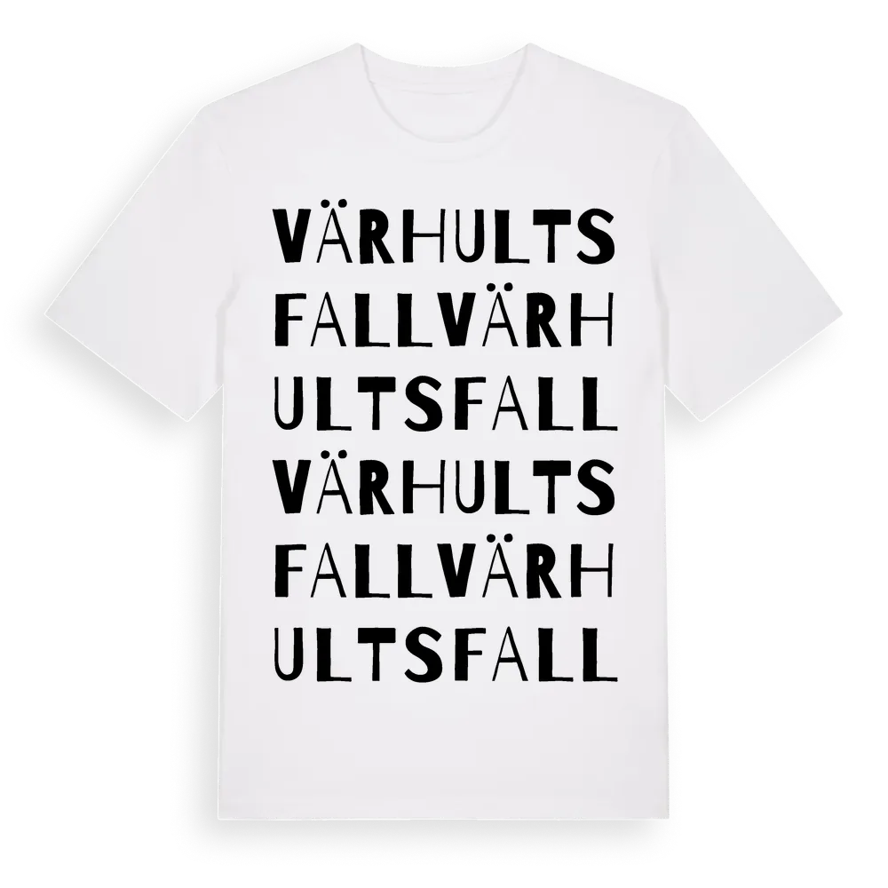Värhultsfall ordlek t-shirt är inspirerad av Värhultsfall i Örebro län, Sverige. Tröjan är designad för dig som har en speciell koppling till platsen – oavsett om du bor här, har rötterna här eller bara älskar Värhultsfall.