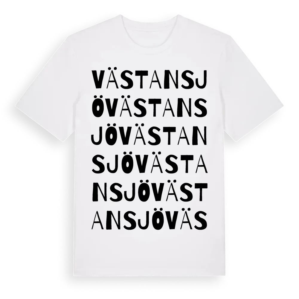 Västansjö ordlek t-shirt är inspirerad av byn Västansjö i Örebro län, Sverige. Tröjan är designad för dig som har en speciell koppling till platsen – oavsett om du bor här, har rötterna här eller bara älskar Västansjö.