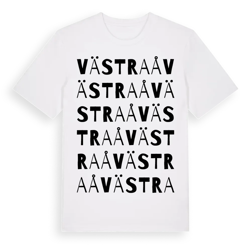 Västra Å ordlek t-shirt är inspirerad av Västra Å i Örebro län, Sverige. Tröjan är designad för dig som har en speciell koppling till platsen – oavsett om du bor här, har rötterna här eller bara älskar Västra Å.
