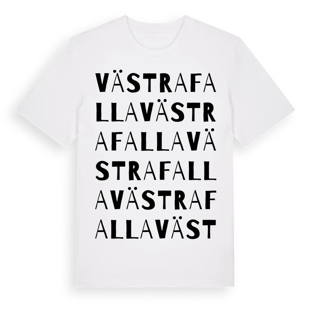 Västra Falla ordlek t-shirt är inspirerad av Västra Falla i Örebro län, Sverige. Tröjan är designad för dig som har en speciell koppling till platsen – oavsett om du bor här, har rötterna här eller bara älskar Västra Falla.
