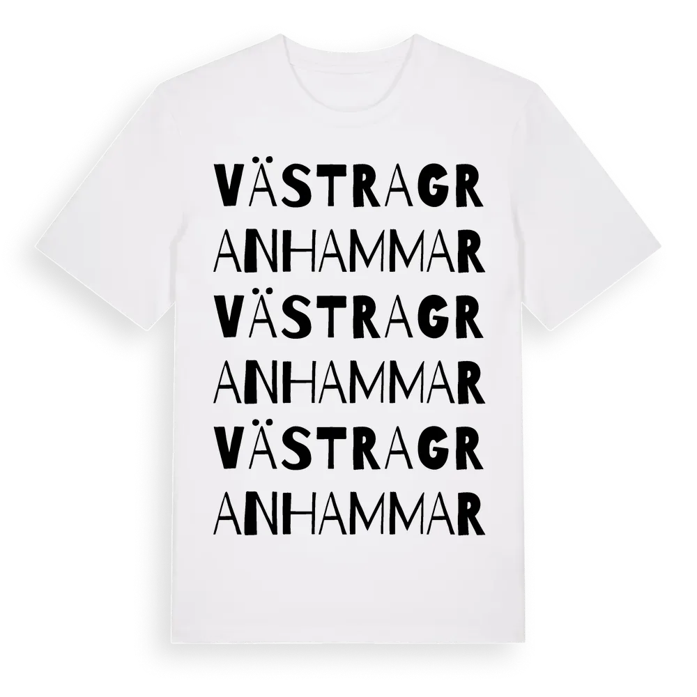 Västra Granhammar ordlek t-shirt är inspirerad av byn Västra Granhammar i Örebro län, Sverige. Tröjan är designad för dig som har en speciell koppling till platsen – oavsett om du bor här, har rötterna här eller bara älskar Västra Granhammar.