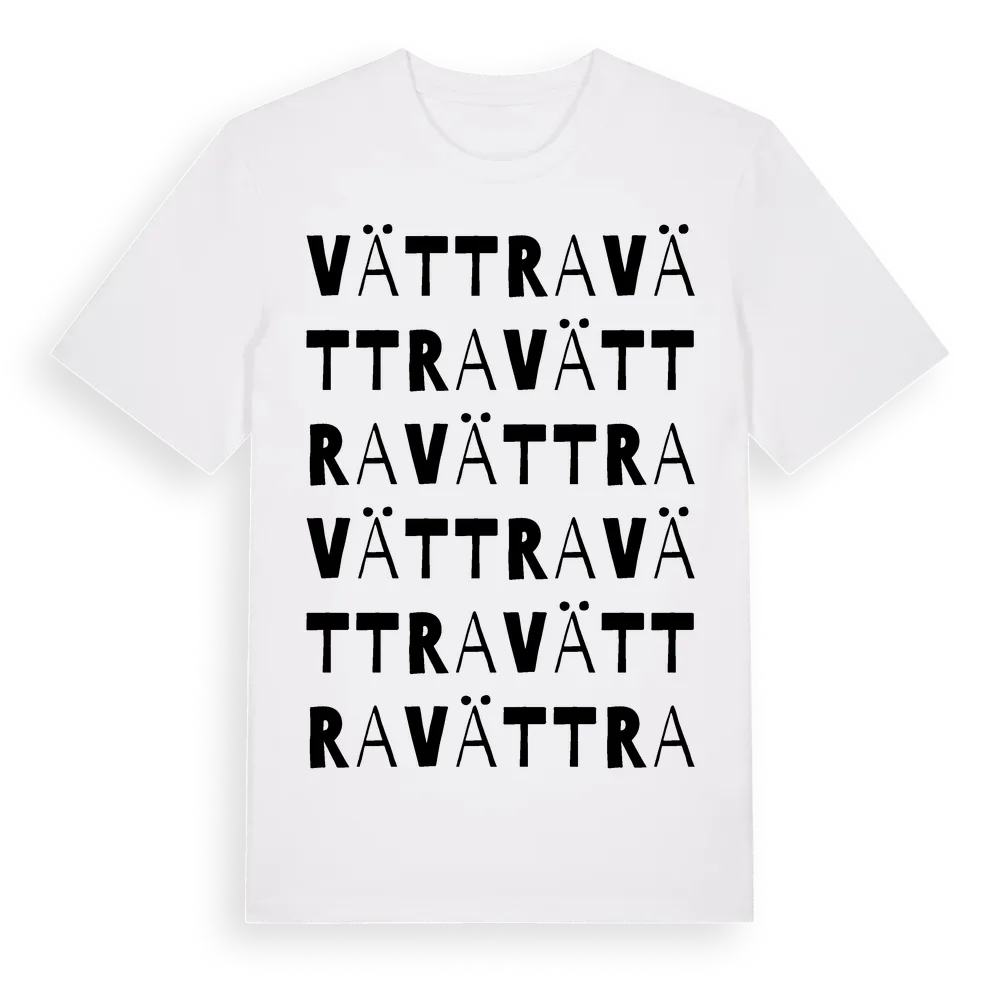 Vättra ordlek t-shirt är inspirerad av Vättra i Örebro län, Sverige. Tröjan är designad för dig som har en speciell koppling till platsen – oavsett om du bor här, har rötterna här eller bara älskar Vättra.