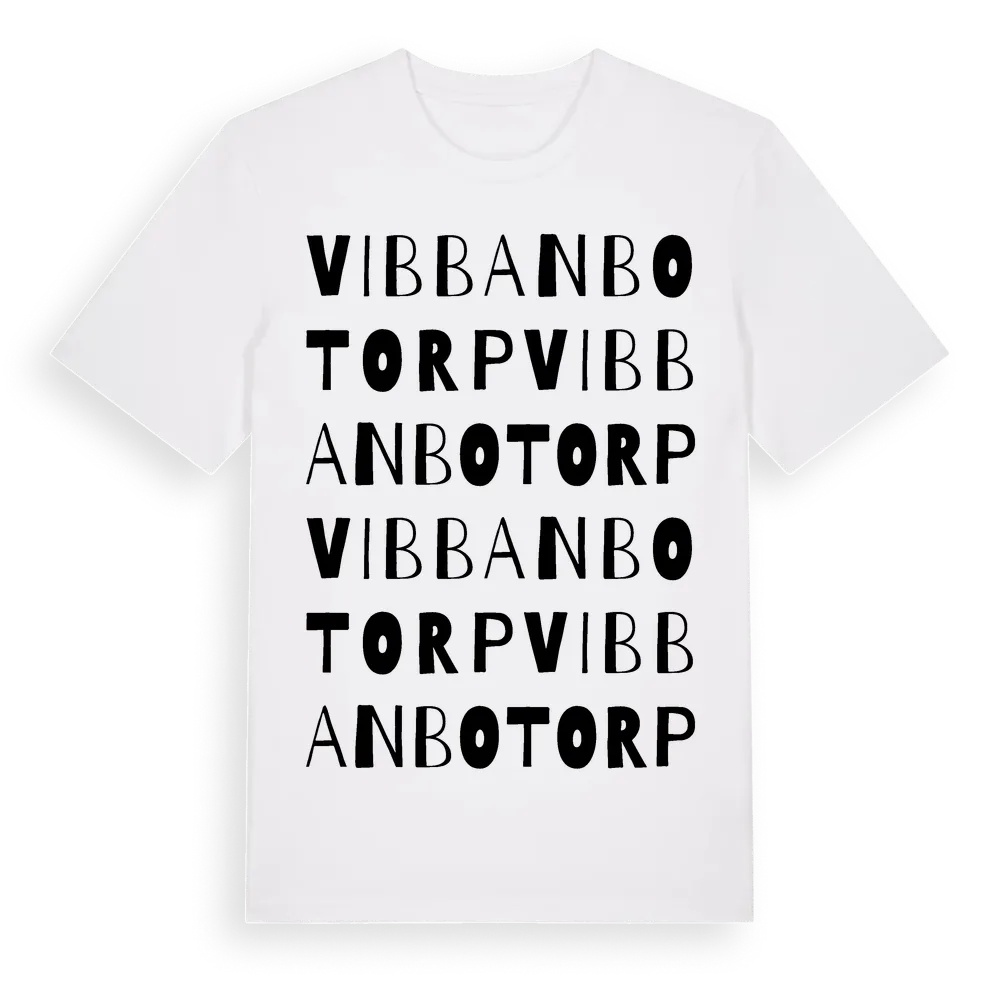 Vibbanbotorp ordlek t-shirt är inspirerad av Vibbanbotorp i Örebro län, Sverige. Tröjan är designad för dig som har en speciell koppling till platsen – oavsett om du bor här, har rötterna här eller bara älskar Vibbanbotorp.