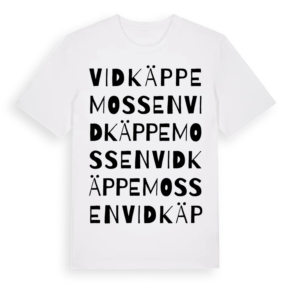 Vidkäppemossen ordlek t-shirt är inspirerad av Vidkäppemossen i Örebro län, Sverige. Tröjan är designad för dig som har en speciell koppling till platsen – oavsett om du bor här, har rötterna här eller bara älskar Vidkäppemossen.