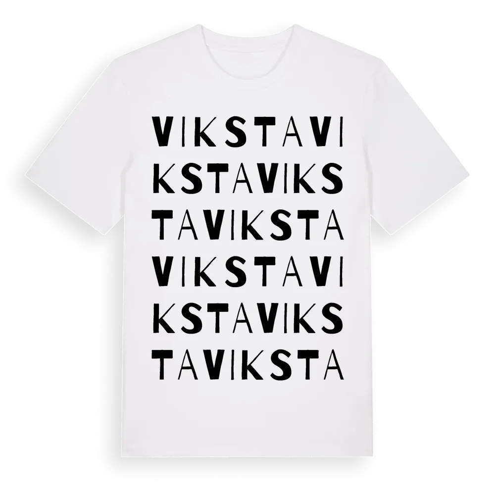 Viksta ordlek t-shirt är inspirerad av byn Viksta i Örebro län, Sverige. Tröjan är designad för dig som har en speciell koppling till platsen – oavsett om du bor här, har rötterna här eller bara älskar Viksta.