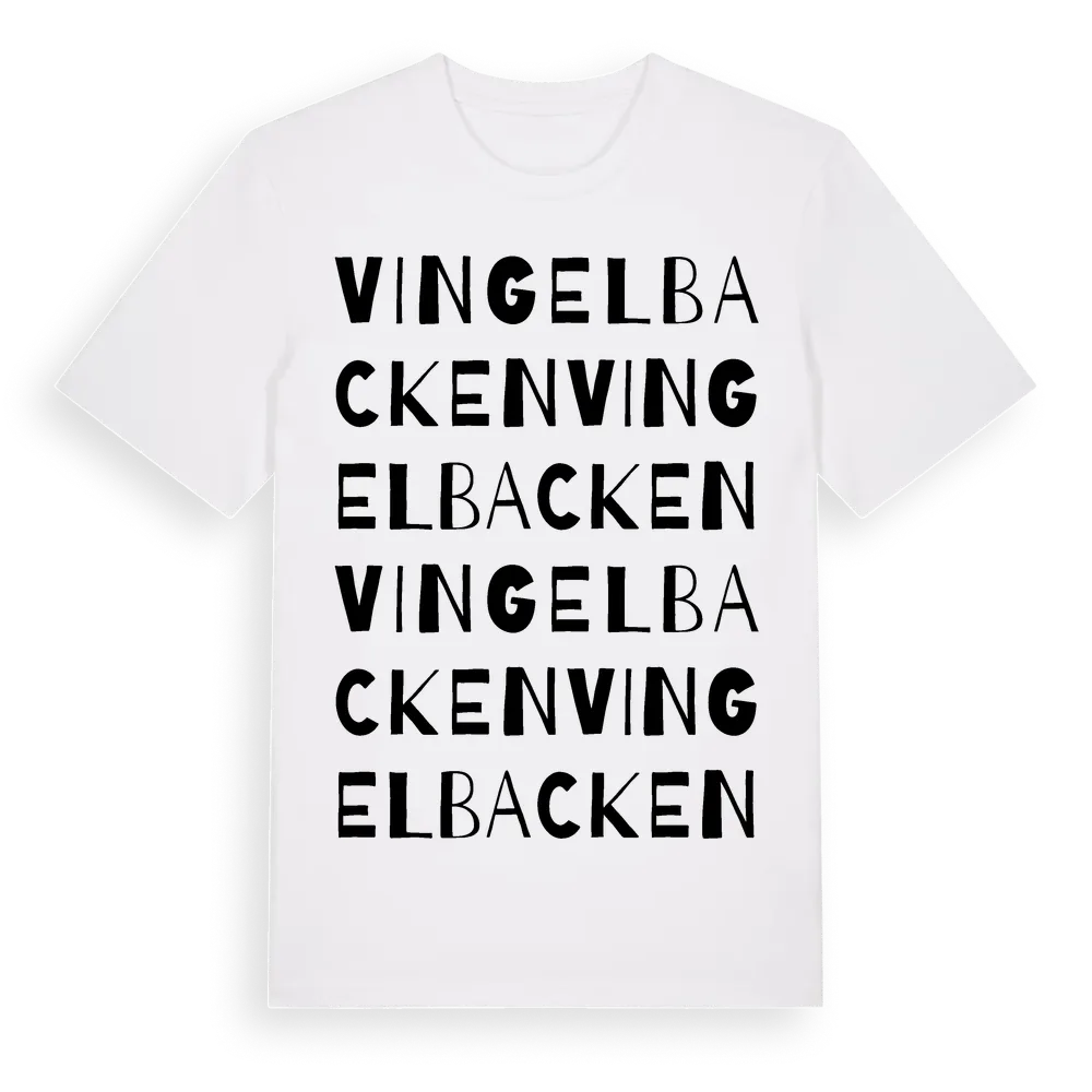 Vingelbacken ordlek t-shirt är inspirerad av Vingelbacken i Örebro län, Sverige. Tröjan är designad för dig som har en speciell koppling till platsen – oavsett om du bor här, har rötterna här eller bara älskar Vingelbacken.