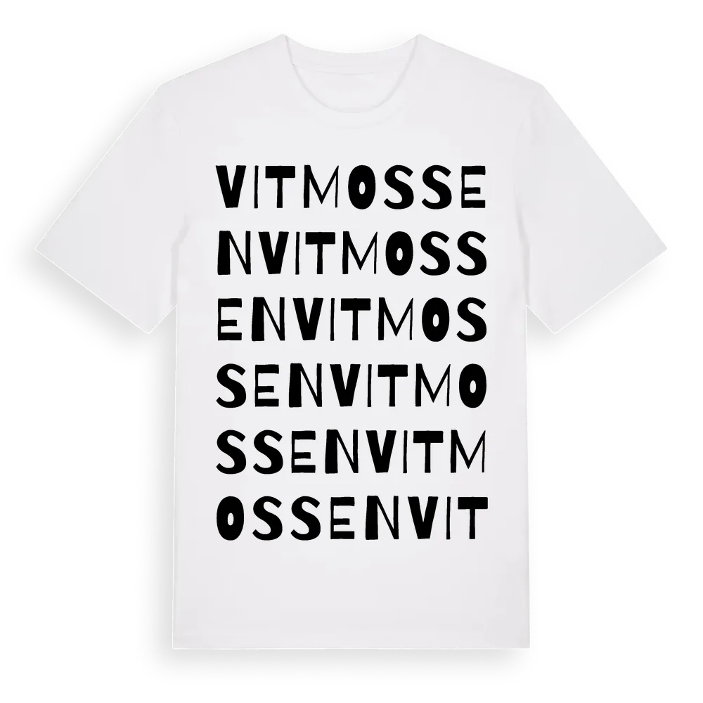 En ordlek byggd på Vitmossens namn. Subtilt och klurig – ett motiv som bara de som verkligen känner platsen fullt ut förstår. Premium bomull, unisex – från Vitmossen i Örebro län.