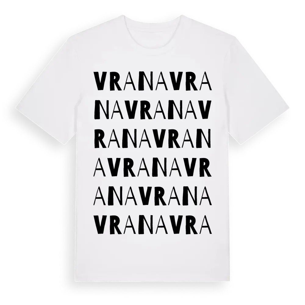 Vrana ordlek t-shirt är inspirerad av Vrana i Örebro län, Sverige. Tröjan är designad för dig som har en speciell koppling till platsen – oavsett om du bor här, har rötterna här eller bara älskar Vrana.