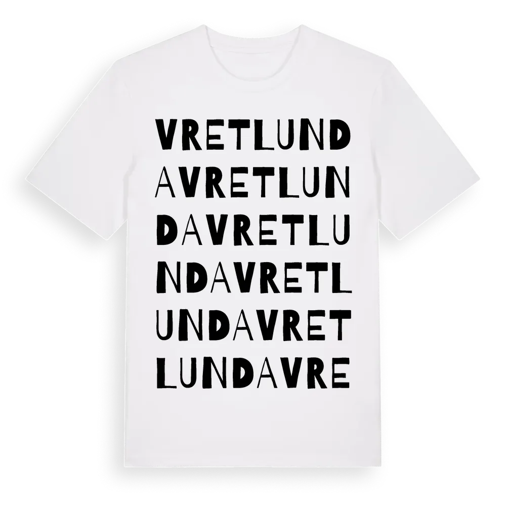 Vretlunda ordlek t-shirt är inspirerad av byn Vretlunda i Örebro län, Sverige. Tröjan är designad för dig som har en speciell koppling till platsen – oavsett om du bor här, har rötterna här eller bara älskar Vretlunda.