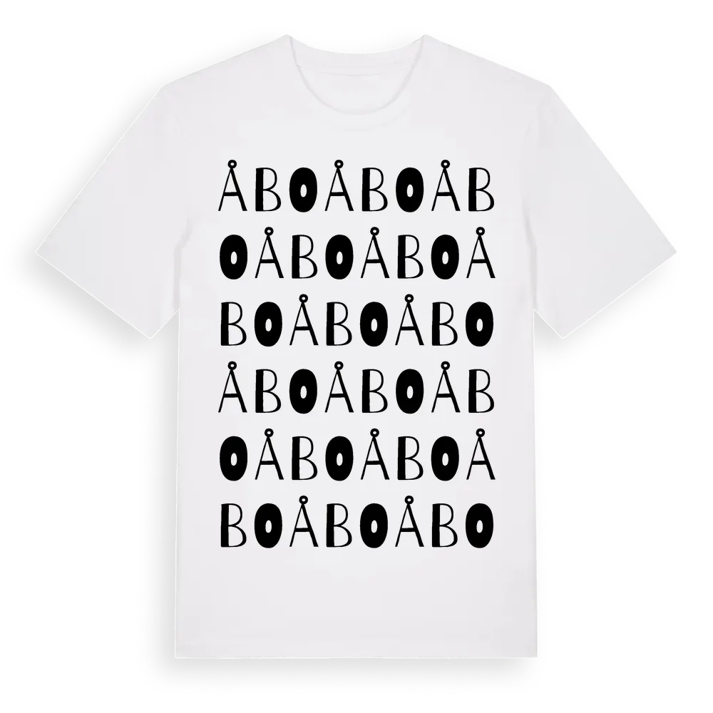 Åbo ordlek t-shirt är inspirerad av Åbo i Östergötlands län, Sverige. Tröjan är designad för dig som har en speciell koppling till platsen – oavsett om du bor här, har rötterna här eller bara älskar Åbo.