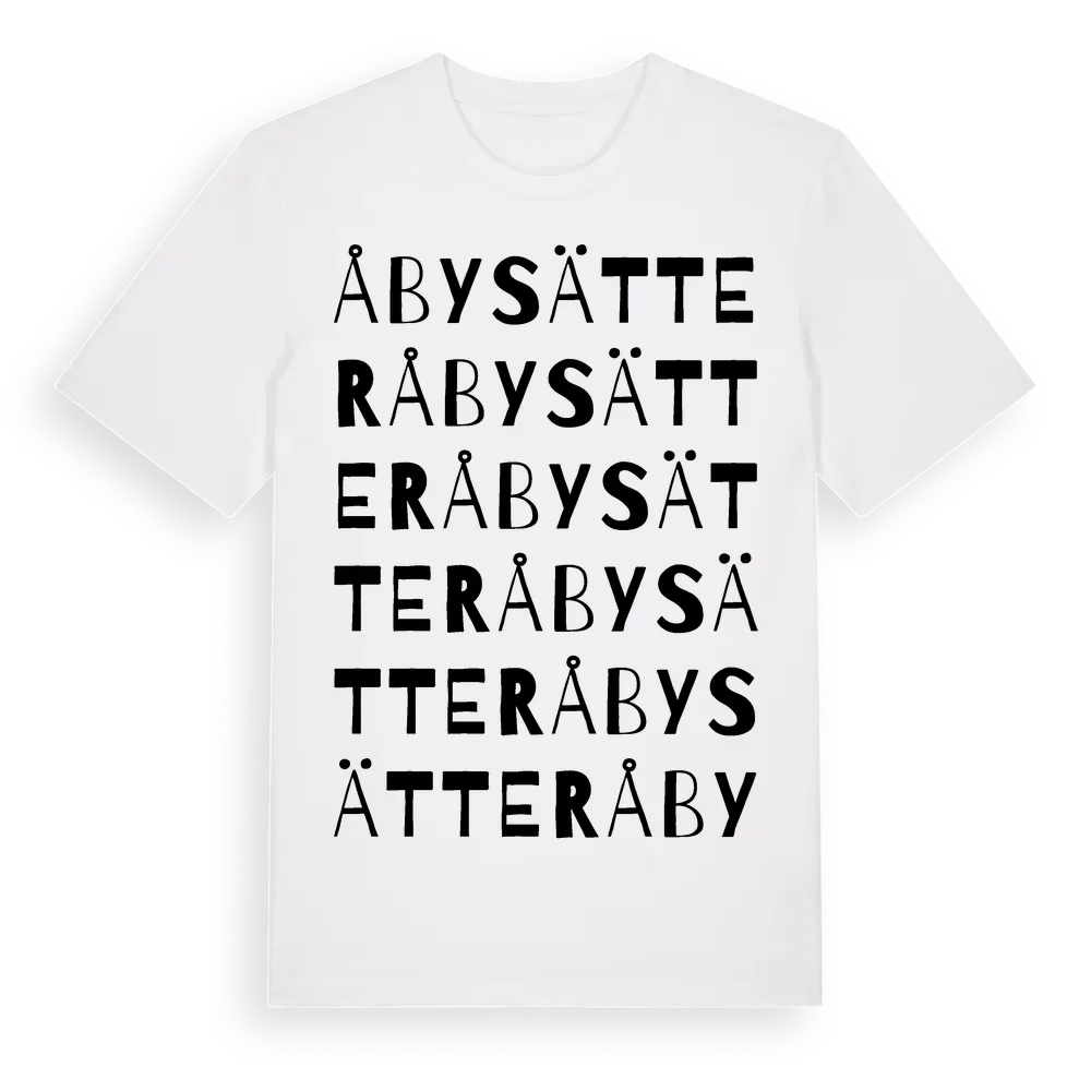 Åbysätter ordlek t-shirt är inspirerad av Åbysätter i Östergötlands län, Sverige. Tröjan är designad för dig som har en speciell koppling till platsen – oavsett om du bor här, har rötterna här eller bara älskar Åbysätter.