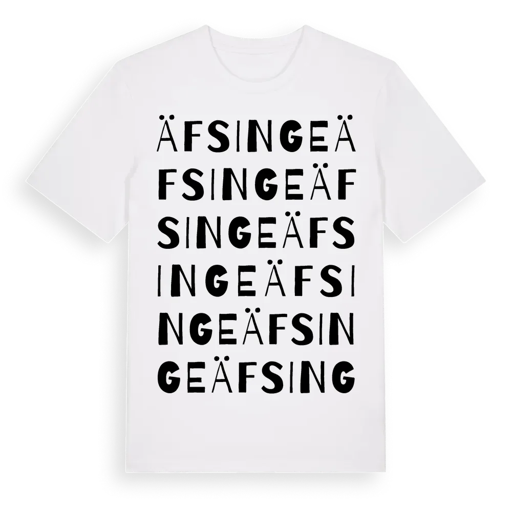 Äfsinge ordlek t-shirt är inspirerad av Äfsinge i Östergötlands län, Sverige. Tröjan är designad för dig som har en speciell koppling till platsen – oavsett om du bor här, har rötterna här eller bara älskar Äfsinge.