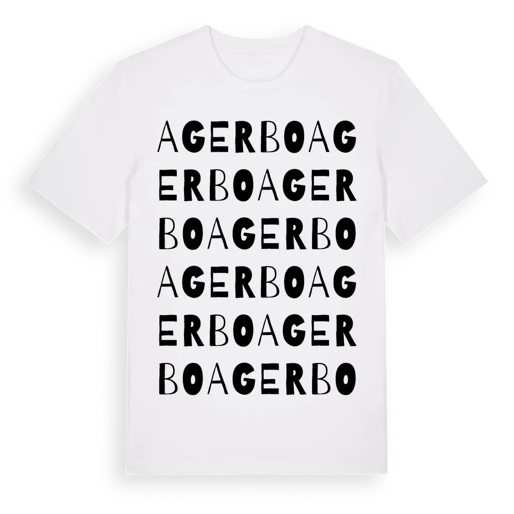 Agerbo ordlek t-shirt är inspirerad av Agerbo i Östergötlands län, Sverige. Tröjan är designad för dig som har en speciell koppling till platsen – oavsett om du bor här, har rötterna här eller bara älskar Agerbo.