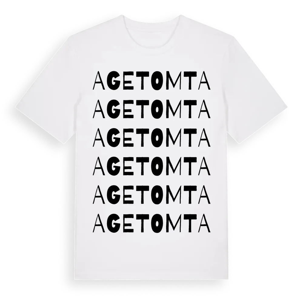 Agetomta ordlek t-shirt är inspirerad av byn Agetomta i Östergötlands län, Sverige. Tröjan är designad för dig som har en speciell koppling till platsen – oavsett om du bor här, har rötterna här eller bara älskar Agetomta.