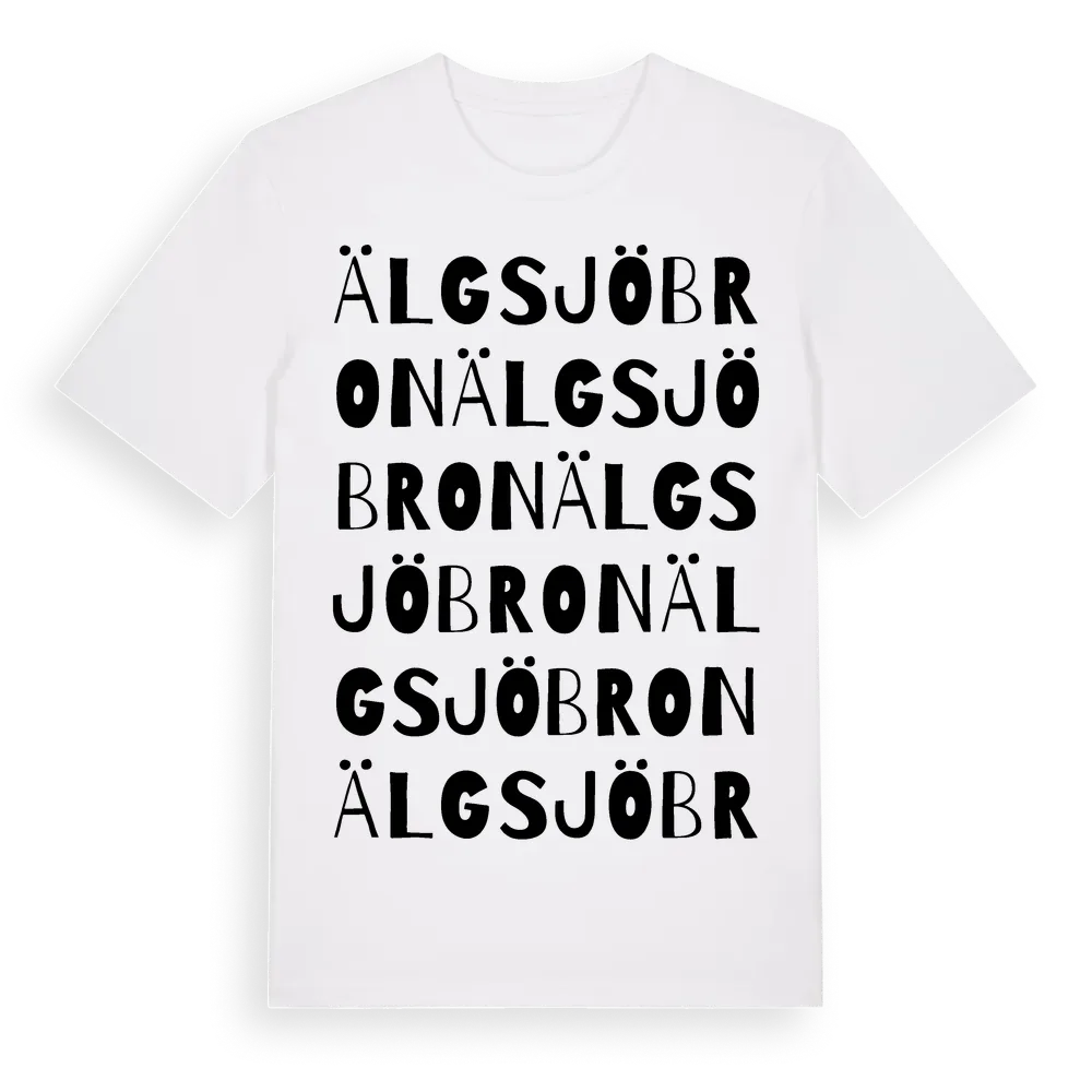 Älgsjöbron ordlek t-shirt är inspirerad av Älgsjöbron i Östergötlands län, Sverige. Tröjan är designad för dig som har en speciell koppling till platsen – oavsett om du bor här, har rötterna här eller bara älskar Älgsjöbron.