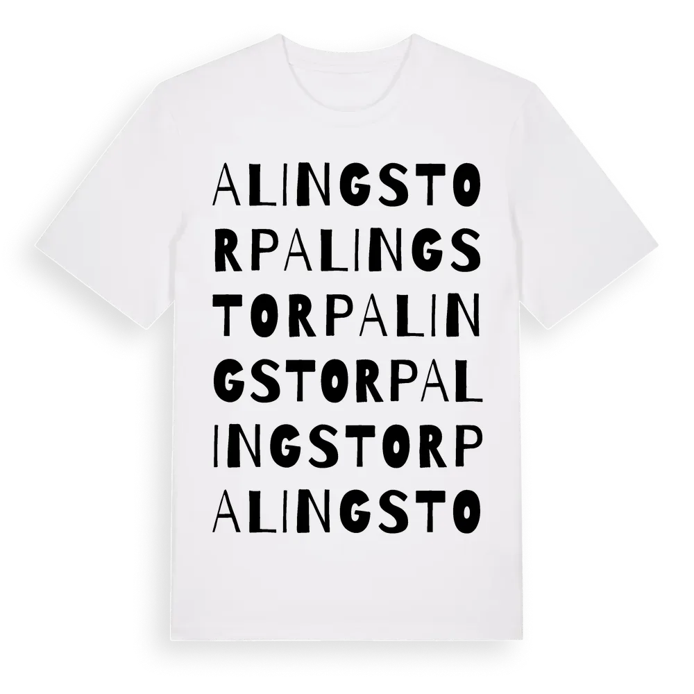 Alingstorp ordlek t-shirt är inspirerad av Alingstorp i Östergötlands län, Sverige. Tröjan är designad för dig som har en speciell koppling till platsen – oavsett om du bor här, har rötterna här eller bara älskar Alingstorp.