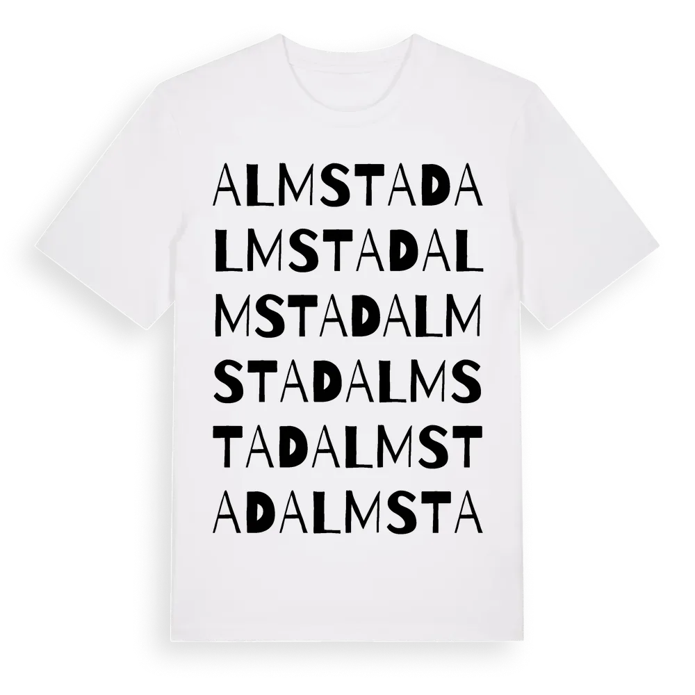 Almstad ordlek t-shirt är inspirerad av Almstad i Östergötlands län, Sverige. Tröjan är designad för dig som har en speciell koppling till platsen – oavsett om du bor här, har rötterna här eller bara älskar Almstad.