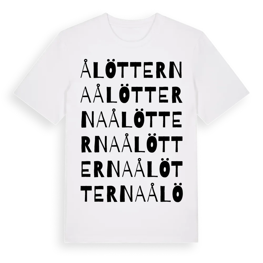 Ålötterna ordlek t-shirt är inspirerad av byn Ålötterna i Östergötlands län, Sverige. Tröjan är designad för dig som har en speciell koppling till platsen – oavsett om du bor här, har rötterna här eller bara älskar Ålötterna.