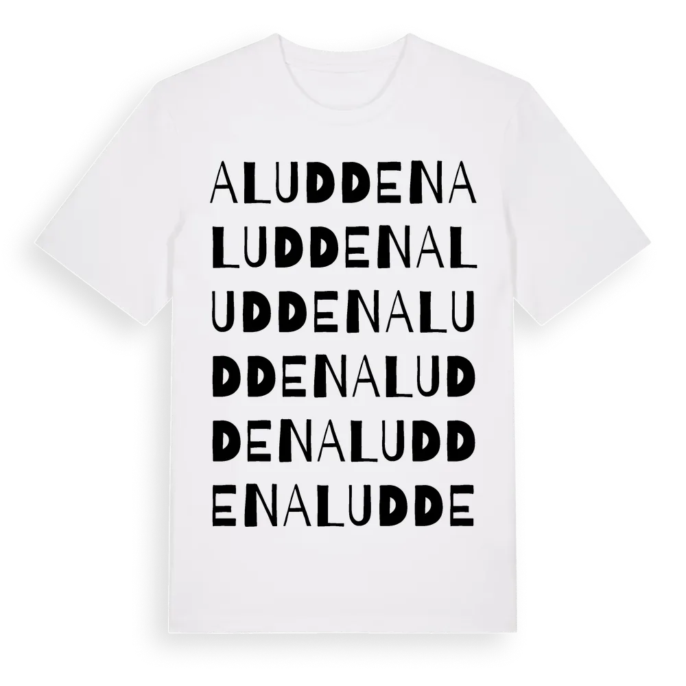 Aludden ordlek t-shirt är inspirerad av Aludden i Östergötlands län, Sverige. Tröjan är designad för dig som har en speciell koppling till platsen – oavsett om du bor här, har rötterna här eller bara älskar Aludden.