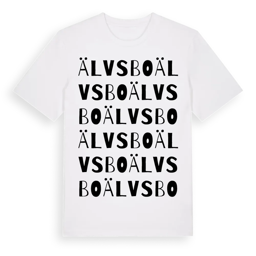 Älvsbo ordlek t-shirt är inspirerad av byn Älvsbo i Östergötlands län, Sverige. Tröjan är designad för dig som har en speciell koppling till platsen – oavsett om du bor här, har rötterna här eller bara älskar Älvsbo.