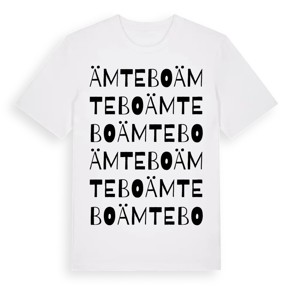 Ämtebo ordlek t-shirt är inspirerad av Ämtebo i Östergötlands län, Sverige. Tröjan är designad för dig som har en speciell koppling till platsen – oavsett om du bor här, har rötterna här eller bara älskar Ämtebo.